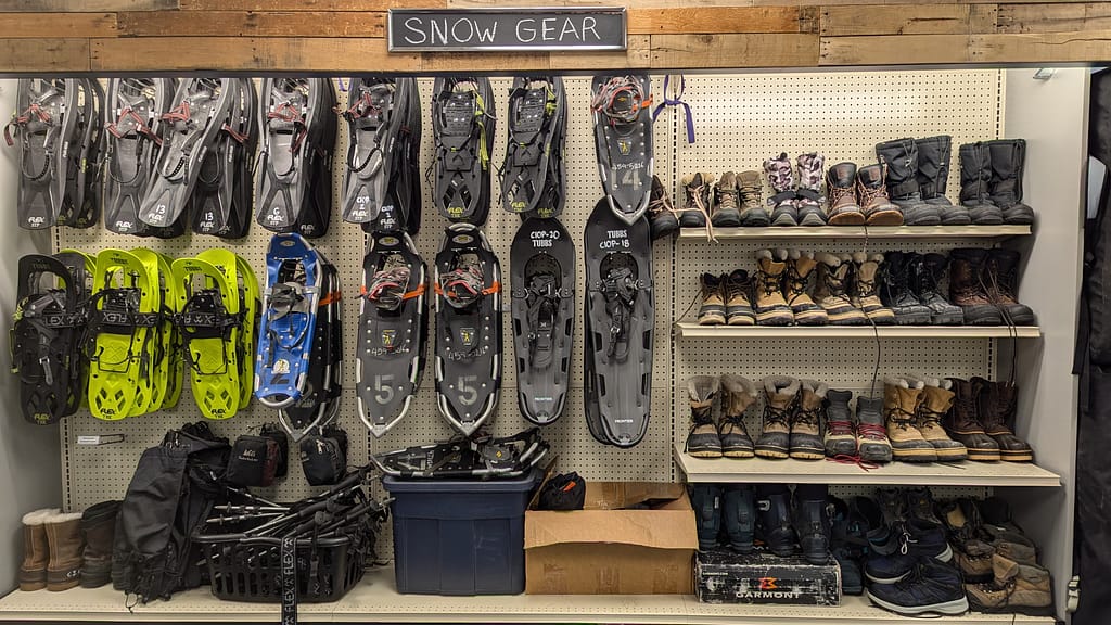 Available equipment and resources include tents, sleeping bags, stoves, backpacks, headlamps, coolers, rafts, kayaks, paddle boards, reference books, and much more.Â
